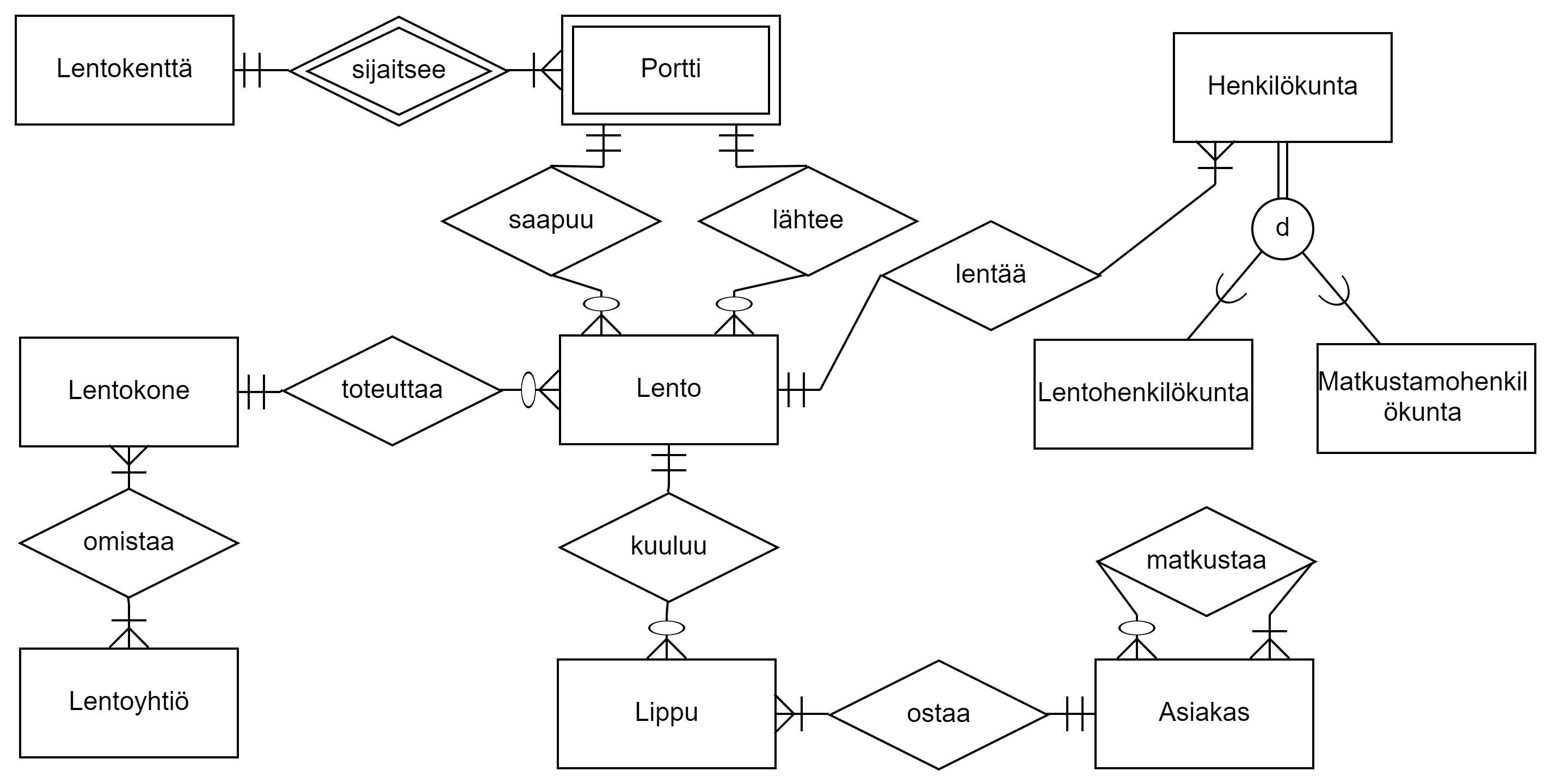 Tutustu alla olevaan lentojen ylläpitoon tarkoitetun tietokannan käsitteelliseen malliin.