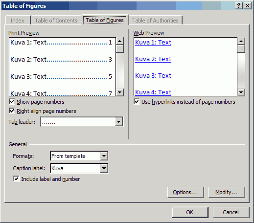 - Viittauksia voit lisätä valinnalla Insert | Indexes and Tables | Insert Bibliography Entry