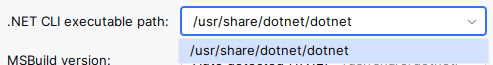 Klikkaa kohdan .NET CLI executable path -kentän alasvetovalikkoa: